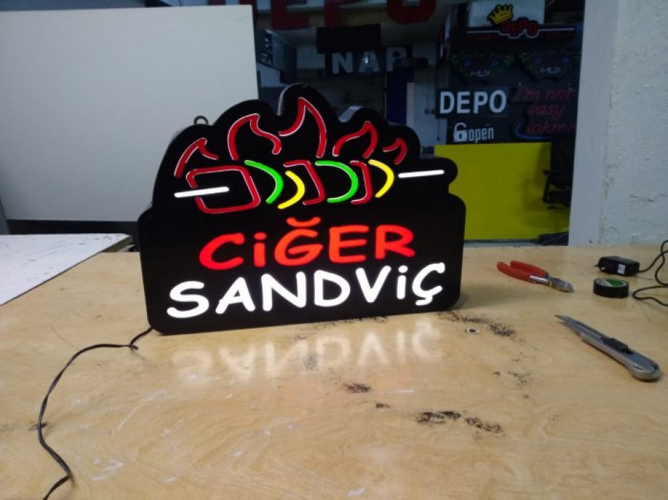 Ciger Sandvic Yazili Gorselli Tabelasi 3d Led Neon Etkili Isikli